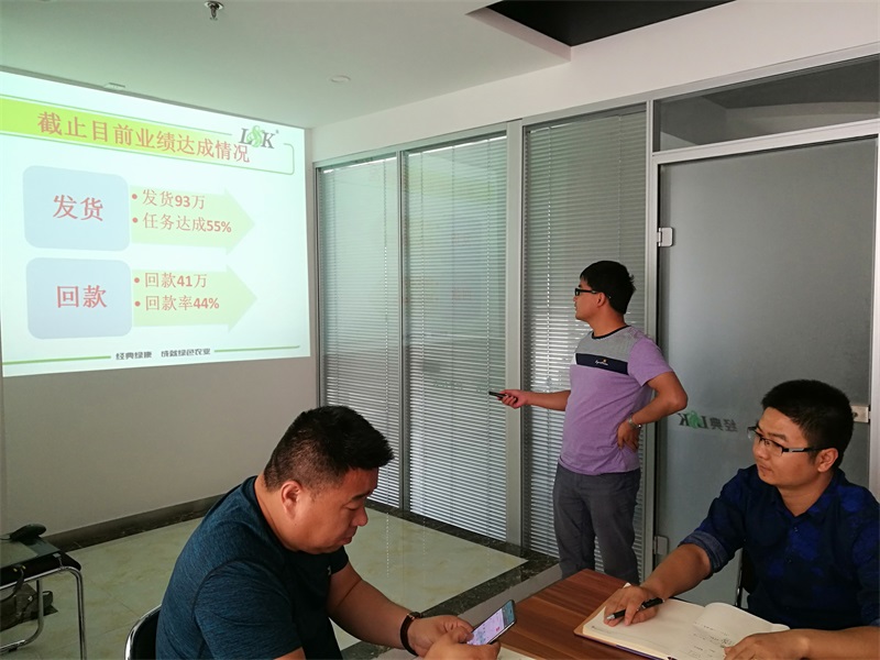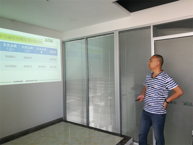 會議第二天,周總做2017年銷售工作總結,首先對比了各個市場2016年與2017年同期發(fā)貨情況及公司大品的漲跌情況,其次總結了上半年銷售中存在的問題及需要改進的具體方案。之后安排了下半年的發(fā)貨及回款任務,*** 后總結了銷售隊伍中存在的問題及下一步改進的辦法。并特別指出今年希望各位業(yè)務經理按照公司要求的時間內完成公司制定的任務,以便公司全力以赴舉辦年底的植保會。