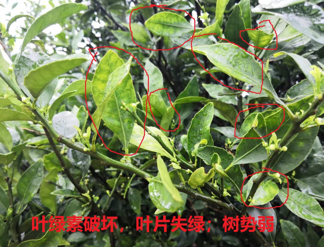 我們建議使用凱露森(2000倍)+黃變綠(1000倍)連續(xù)使用兩次進(jìn)行改善。經(jīng)過兩次使用后觀察,果樹情況大有改觀?!?018年5月8日觀察】